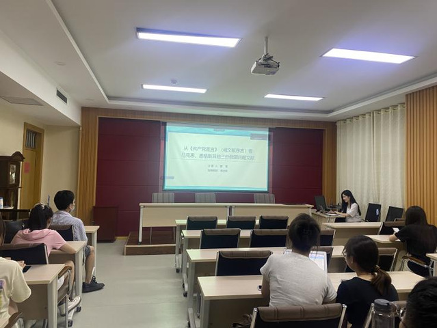7月5日晚上,学院于鸿远楼618室举行第十一期“稷下”青马读书会,本场读书会采取了线上和线下相结合的形式,由2021级研究生董雪担任主讲人,邀请学院李述森教授担任点评老师,研究生秘书张永伟老师及2022级、2021级全体研究生参加。