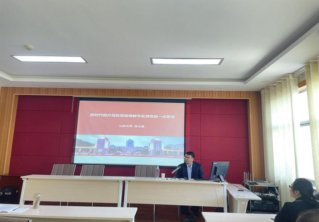 10月26日下午,我院在鸿远楼618室举办题为《新时代提升高校思政课教学实效性》的学术报告。山东大学特聘教授、williamhill英国院长、博士生导师、国家“万人计划”教学名师张士海教授主讲,院党委副书记、副院长刘芹,教学科研办公室主任张永伟及全体教职工参与,会议由院党委副书记、院长刘东锋主持。