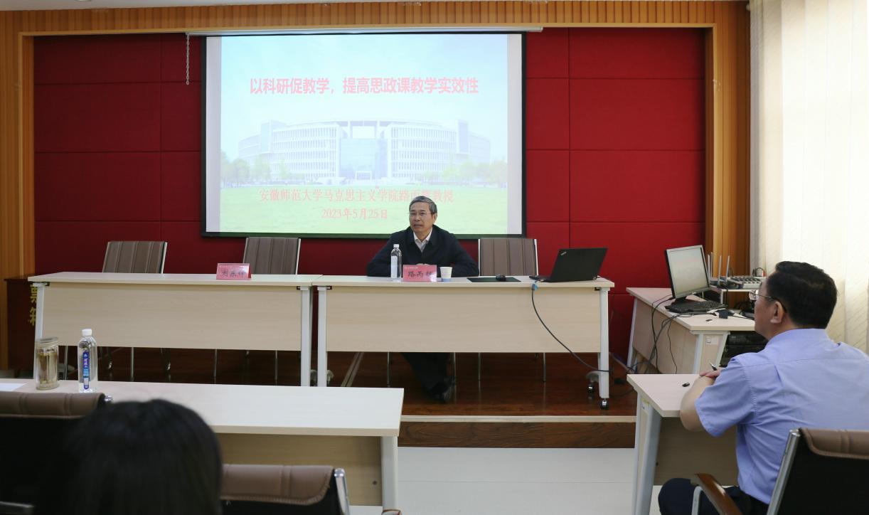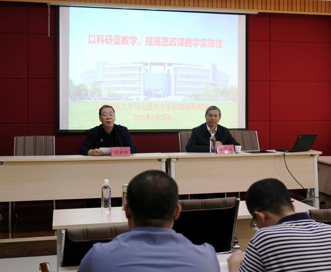 为进一步提升我院思政课教师教学科研能力和素养,5月25日上午,学院邀请安徽师范大学williamhill英国路丙辉教授作《以科研促教学,提高思政课教学实效性》专题报告。此次报告会由院党委副书记、院长刘东锋主持,学院全体教师参加。