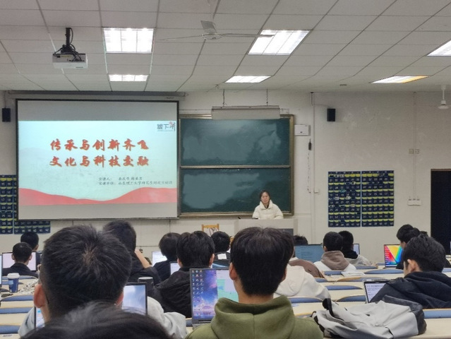 在计算机科学与技术学院、数学与统计学院,宣讲团成员韩亚男、岳庆华以“传承与创新齐飞,文化与科技交融”为题,围绕“文化赋科技灵魂”“科技助文化发展”“科技与文化交融”三个方面对科技与文化的关系进行论述,倡导当代青年要勇于探索、善于创新,担起新时代青年人的“文化使命”。