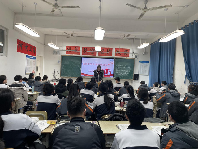 12月20日下午,我院研究生时政宣讲团成员李博然、翟群到淄川中学开展题为“承百年风华,担时代之梁”的理论宣讲,宣讲活动由教师潘晖主持,淄川中学高一五班全体同学参加。