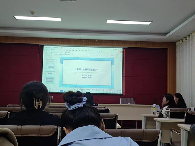 本次读书会的阅读书目为《毛泽东选集(第一卷)》、《思想政治教育方法创新研究》。扈婷以《毛泽东选集(第一卷)》中的《中国社会各阶级的分析》为重点,从选题缘由、基本内容、现实启示、时代价值四个方面进行讲述。她认为《中国社会各阶级的分析》中所饱含着的哲学智慧和战略视野,对我们推进社会主义现代化建设具有重要意义,所蕴涵的思想精髓是党和人民宝贵的精神财富,所运用的研究方法对我们开展学习工作具有重要借鉴价值。綦晓晨以《思想政治教育方法创新研究》这本书的第六、七章为重点,分为作者简介、内容分享、读书感悟、导师点评四个部分展开读书分享。她认为该书通过对思想政治教育方法创新规律的认识,把握其内外本质的、必然的、稳定的联系,预见未来思想政治教育方法创新的发展趋势,提出了科学的预案、方略和对策。