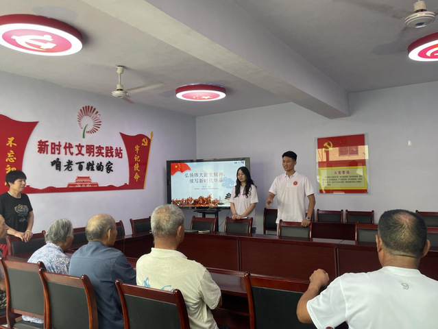 座谈会结束后,实践团成员在埠下村、河南村、马王峪村、刘家沟村、浇花泉村围绕“红船依旧,初心不忘”“弘扬伟大建党精神,续写新时代华章”“传爱国精神,担时代使命”等主题展开了丰富多彩的理论宣讲活动。实践团成员们通过生动的讲述、丰富的图片和视频资料,以及互动问答等形式,向村民们深刻阐述了“红船精神”的内涵与意义,回顾了党的光辉历程,强调了不忘初心、牢记使命的重要性。同时,还邀请了村里的老党员讲述革命故事,回顾奋斗历史,激励和鞭策了年轻一代更加坚定地走好新时代的长征路。