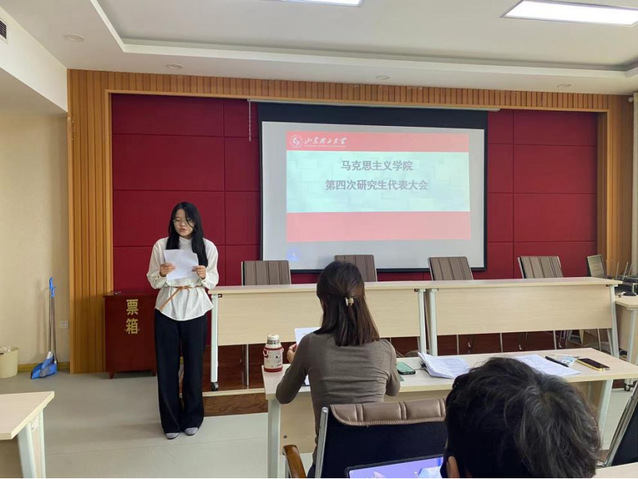 10月30日上午,我院于鸿远楼618室召开第四次研究生代表大会。本次会议采用线上线下相结合的方式进行,学院全体研究生参加此次大会,会议由学院第十三届研究生会主席团成员莫嘉莉主持。