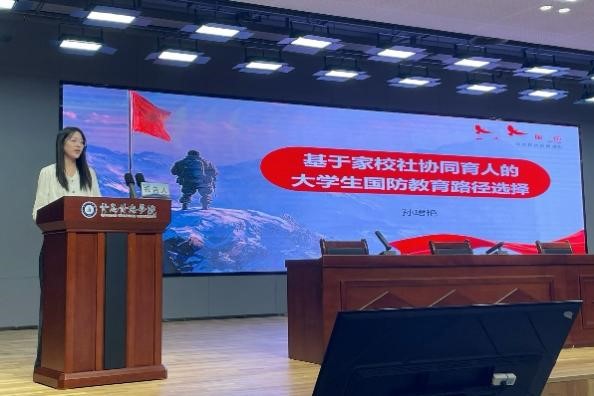 我院2023级硕士研究生孙珺艳作为发言代表作了题为《基于家校社协同育人的大学生国防教育路径选择》的学术报告,从家校社协同育人的内在机理切入,探索大学生国防教育的新模式,提出了当前大学生国防教育领域有待进一步拓展深化的问题,总结提出家校社协同育人模式大学生国防教育的实践策略,旨在全面增强大学生国防素养与爱国情怀。赵晓强、王翔作为获奖代表上台领奖。