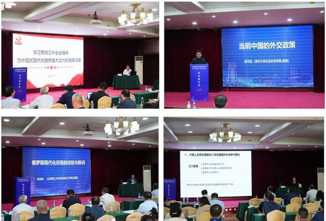 会议分为开幕式、专家主旨报告、分组发言和闭幕式四个部分。专家主旨报告期间,山东省委党校殷玉平教授、清华大学社会科学学院赵可金教授、我院李述森教授等5位专家作主旨报告,分别就学习党的二十届三中全会精神、当前中国的外交政策、俄罗斯现代化历程的经验与教训、美国代理人战争新动向以及广泛凝聚进一步全面深化改革共识等问题进行了深刻的解读。