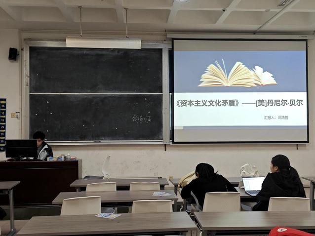 本次读书会的阅读书目是《历史与阶级意识》和《资本主义文化矛盾》。张文洁主要从作者简介、创作背景、主要内容以及个人感悟四个方面进行分享。通过文本分析,她指出《历史与阶级意识》探讨了阶级意识在历史发展中的作用,以及马克思主义辩证法的真正含义。卢卡奇强调,阶级意识是无产阶级革命的前提,这意味着在当代,社会各阶层需要有清晰的自我认识和对自身利益的把握。闵浩哲主要从内容分析、批判性反思和当代启示三部分进行分享。他认为,贝尔理论可以看做对于资本主义理论的一种完善和改进,类似的文化矛盾并非只出现在资本主义国家。社会主义市场经济同样有其不可缺少的文化根源,同样有其不可忽视的文化背景,也同样有其必须高度重视和认真应对的文化后果。