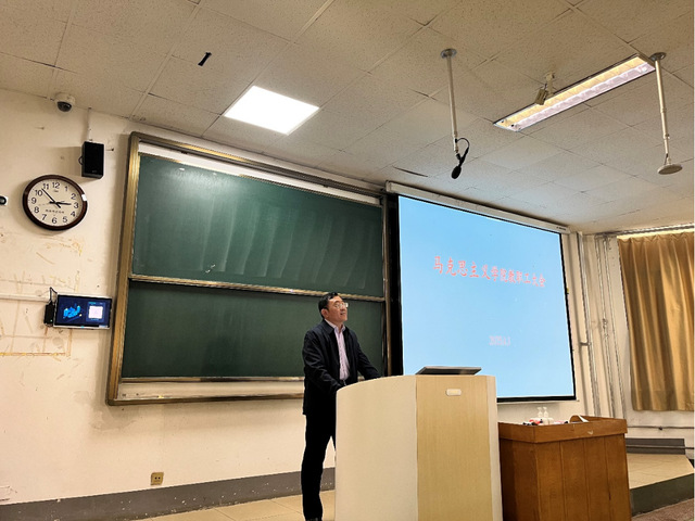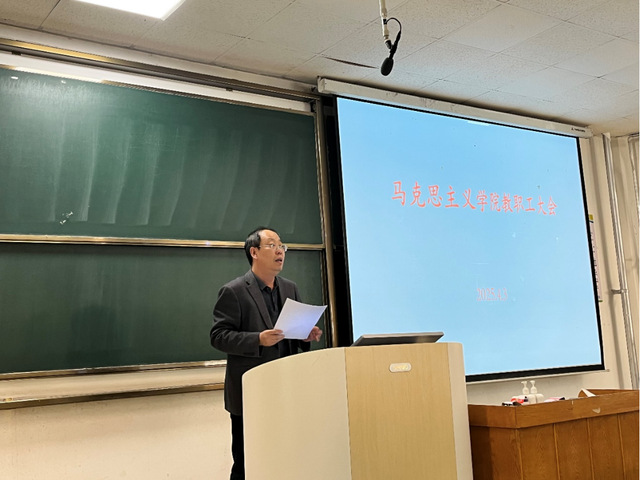 会上,刘东锋院长首先传达了《普通高校思政课教师队伍建设规划(2025-2027年)》文件精神。他强调,教育是国之大计、党之大计,根本任务是立德树人,而思政课作为落实这一任务的关键课程,全体教师要牢记“为党育人、为国育才”的光荣使命,主动对标规划要求,提升教学科研能力,打造高质量思政课堂。他号召全院教师以“政治强、情怀深、思维新、视野广、自律严、人格正”为标准,争做新时代思政“金师”,为培养担当民族复兴大任的时代新人贡献力量。