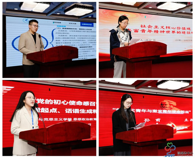 会上,来自北京师范大学、浙江大学、烟台大学、鲁东大学及我院等的博士、硕士研究生围绕青年个体化趋势与青年使命担当、青年个体化趋势与丰富青年精神世界、党的初心使命感召青年、青年注意力风险与丰富青年精神世界、中国式现代化与青年使命担当等议题作了学术汇报。