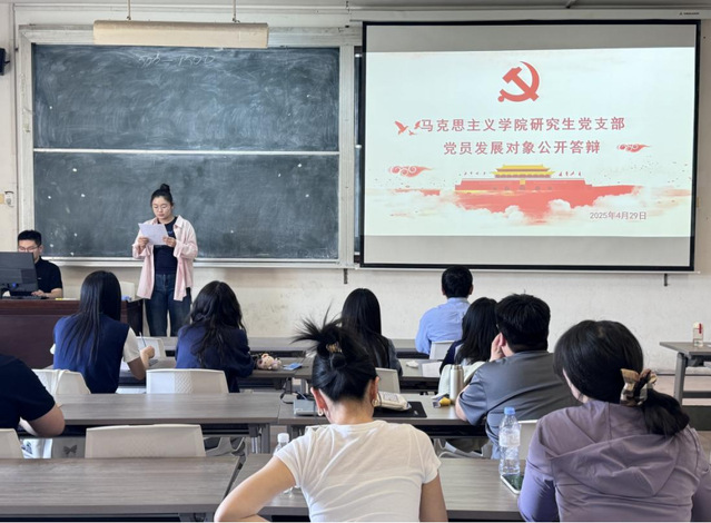 为扎实推进党员选拔工作,确保党员发展质量,4月29日下午,研究生党支部在1号教学楼305室举行党员发展对象答辩会,党支部书记侯振中及支部全体党员参加。