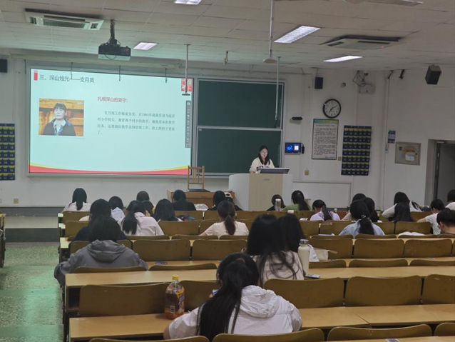 田雨在建筑工程与空间信息学院开展宣讲,通过“生平简介”、“人物故事”、“精神解读”、“现实意义”四个维度,带领人们深入了解王承书这位共和国科学先驱的非凡人生,号召新时代青年以王承书女士为榜样,传承科学家精神,在新时代用智慧与汗水绘制科学发展的宏伟蓝图。