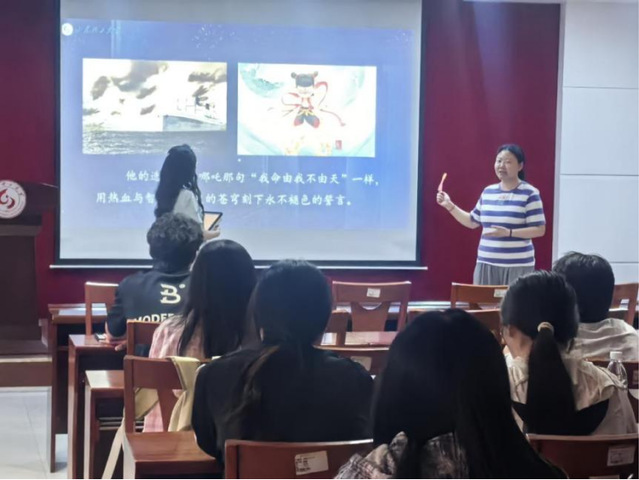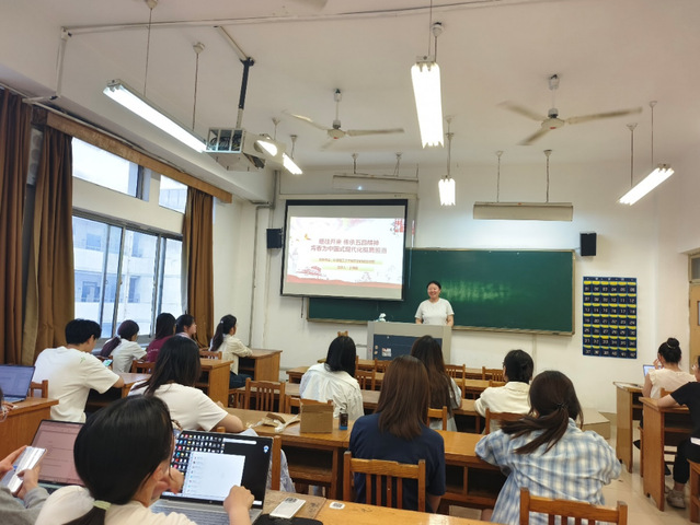 于霁晴在外国语学院开展宣讲,围绕“回望—在精神的长河中寻根”、“看见—在时代的浪潮中闪光”、“出发—在奋斗的征程中答卷”三部分展开论述。她以五四运动历史为脉络,聚焦新时代青年在科技创新、乡村振兴、国际舞台等领域的生动实践,展现五四精神在当代的赓续与焕新,并且呼吁青年以知行合一为准则,将个人理想融入国家发展大局,以创新实干为中国式现代化建设贡献青春力量,书写无愧于时代的奋斗答卷。