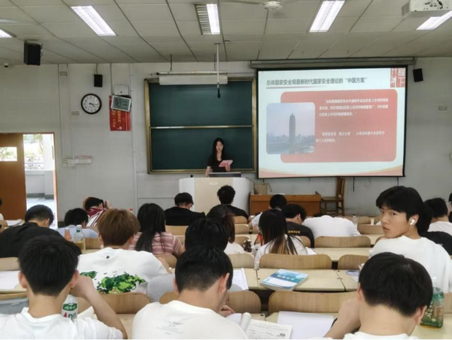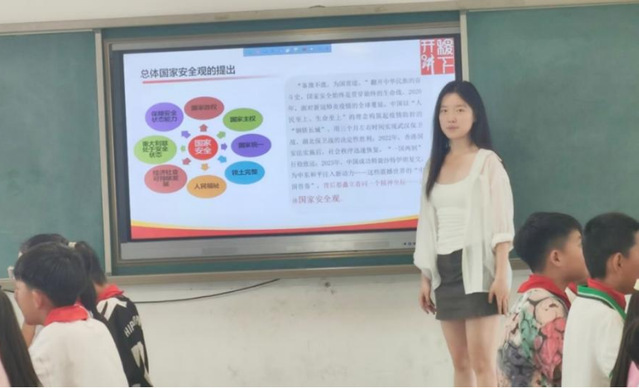 张梓萌在傅家实验小学、机械与工程学院、物理与光电工程学院开展宣讲,她以“践行总体国家安全观 筑牢中华民族复兴梦”为主题,主要围绕“总体国家安全观的提出及核心内涵”“新时代青年在践行总体国家安全观中的使命”以及“对新时代青年的展望”三个部分展开宣讲,呼吁当代青年要树立正确的国家安全观,增强国家安全意识,自觉履行维护国家安全的义务。