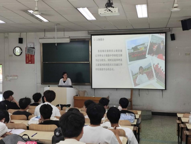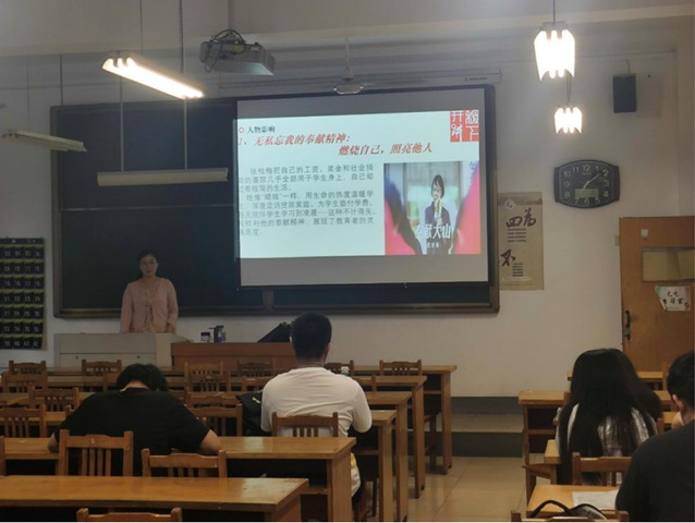 杜欣雅在傅家实验小学、机械与工程学院、物理与光电工程学院开展宣讲。她以“敢做燃灯者 点亮大山梦——走进教育家张桂梅”为主题,通过“人物简介”“人物事迹”“人物影响”三个部分,向大家详细介绍了张桂梅无私奉献的一生,激励同学们从张桂梅身上学到无私忘我的奉献精神。