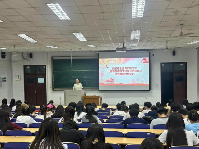 于霁晴到法学院、经济学院、御廷豪景小区、钟楼社区开展宣讲,围绕“回望—精神寻根”“看见—时代闪光”“出发—奋斗答卷”三个维度进行阐述,呼吁广大青年坚持知行合一,自觉将个人理想与国家发展相融合,以创新实干为中国式现代化建设贡献青春力量。