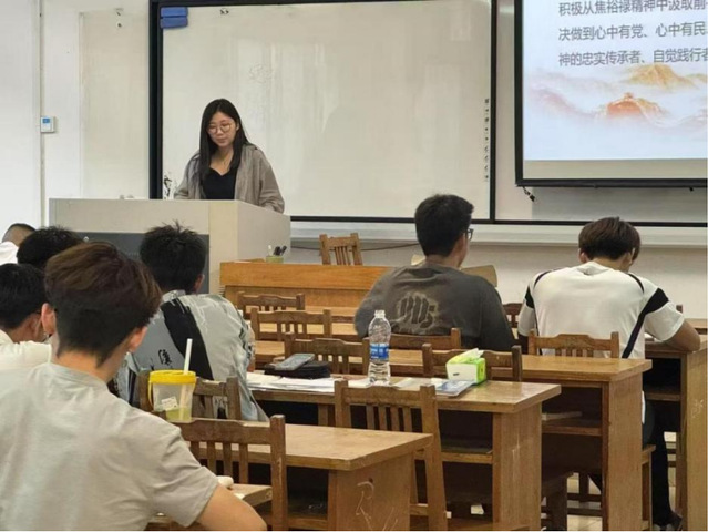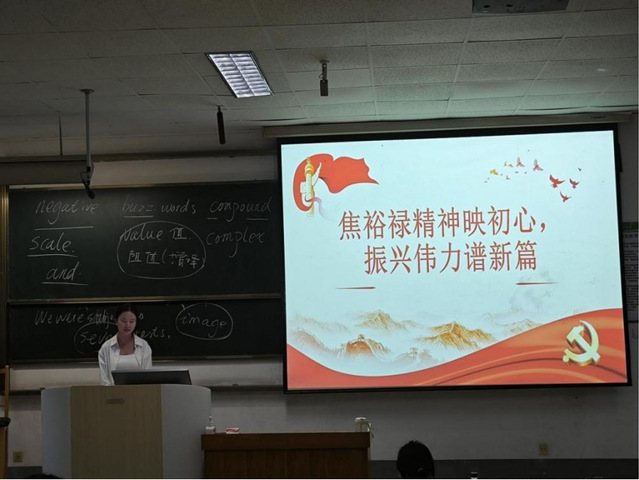 刘亚琦在法学院、生命与医药学院、交通与车辆工程学院、物理与光电工程学院展开宣讲。她以“焦裕禄精神映初心,振兴伟力谱新篇”为主题展开宣讲,详细介绍了焦裕禄的一生以及焦裕禄精神的科学内涵,鼓励同学们不断从焦裕禄精神中汲取前行动力。