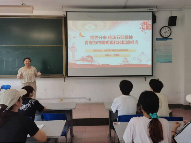 于霁晴到鲁泰纺织服装学院开展宣讲,通过“回望—精神寻根”、“看见—时代闪光”、“出发—奋斗答卷”三个维度进行阐述,重点展示了新时代青年投身科技创新、助力乡村振兴、亮相国际舞台的生动实践,体现了五四精神的时代延续与创新发展。
