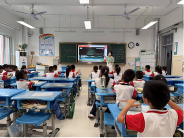 尹晓燕在齐德学校书法社团班开展宣讲,她用生动故事介绍黄旭华的一生,鼓励孩子们像黄旭华一样爱祖国、敢创新,从小事做起,学好知识本领,将来做对社会有用的人,在孩子们心中播下了科学与爱国的种子。