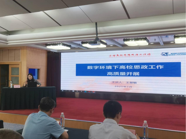在主题发言环节,中国高校思想政治工作网副主任、思政教育工作部主任王慧敏作《数字化环境下高校思政工作高质量开展》报告,她从推动教育数字化的背景和要求出发,深入剖析了教育数字化转型所催生的教育发展新特征,以及这一变革对思政育人工作带来的诸多挑战,详细阐述了数字环境下高校思政工作高质量开展的具体策略。全国“大思政课”实践教学发展研究中心常务副主任李永亮作《构建大中小学思政课一体化生态体系》报告,他从政策要求、生态框架、未来发展三个维度进行解读,结合“大思政课”实践教学的典型案例,生动展示了如何构建大中小学思政课一体化生态体系。淄博市大中小学思政课一体化研究工作室主任李萍则将目光投向当下教育现实,以淄博本地教育情况为例,提出了构建校地合作平台的创新性举措,提供了切实可行的方案。