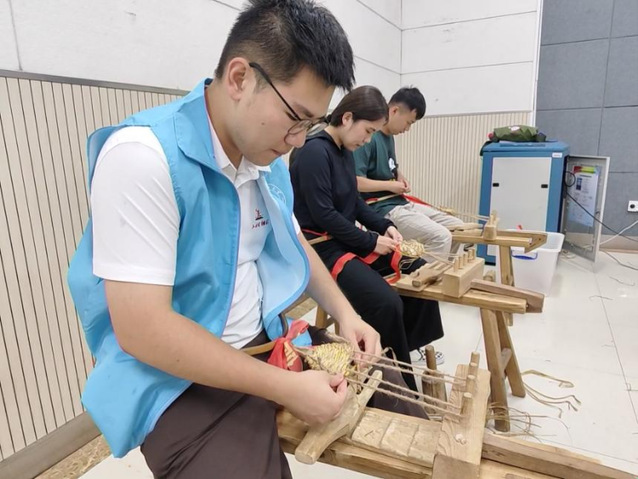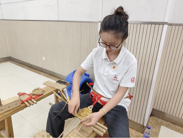 随后,在当地居民阿姨进行手把手教学,在阿姨耐心示范下,每个同学都完成了自己的草鞋作品。当看着自己编出的略显粗糙却结实的草鞋时,实践团成员马绪威感慨到:“一双草鞋看似简单,却凝聚着汗水,更让我明白了如今的幸福生活来之不易。”其中实践团成员于文萍所编草鞋得到了指导老师的高度称赞,被评为该活动的最佳作品之一。