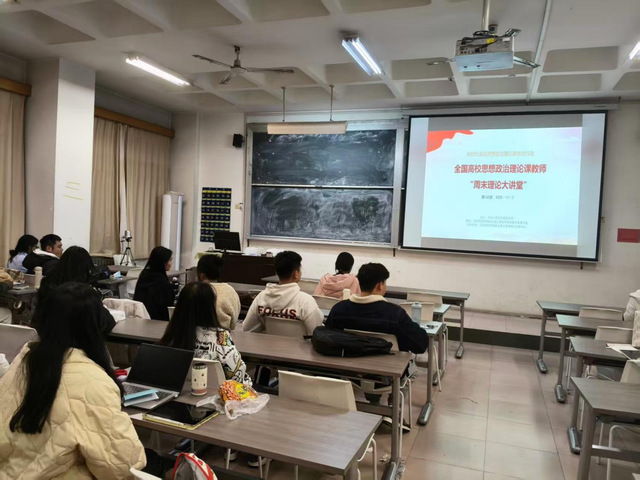 在导学环节,彭庆红围绕《习近平谈治国理政》第五卷第七、第八专题,系统阐释了全面依法治国作为国家治理深刻革命的重要意义。课堂还结合《求是》2025年第十七期重要文章《弘扬伟大抗战精神,向着中华民族伟大复兴的光辉彼岸奋勇前进》,引导青年铭记历史,传承精神,勇担民族复兴大任。在专题报告环节,喻梅、李元豪以“如何运用语言艺术增强思政课的吸引力和感染力——以抗战‘思政大课’的叙事方法为例”为题,生动展示了语言艺术在思想政治教育中的创新运用,为提升思政课教学效果提供了可操作的方法路径。
