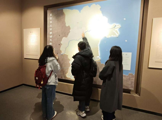 东营市历史博物馆设有《史前文明展》《不忘初心—中共广饶县党史展》《广饶民俗展》等9个基本陈列,展出文物1500余件,生动、翔实、系统地再现了东营市8000多年的悠久历史、灿烂文化与发展脉络。同学们在明清书画、石刻造像等馆藏展前驻足,在古今对话中体悟文化传承的深意;教师们结合展区内容,向学生讲解地域历史与革命历程的紧密关联,让大家深刻认识到,红色基因的孕育离不开深厚的文化土壤与坚实的群众根基。