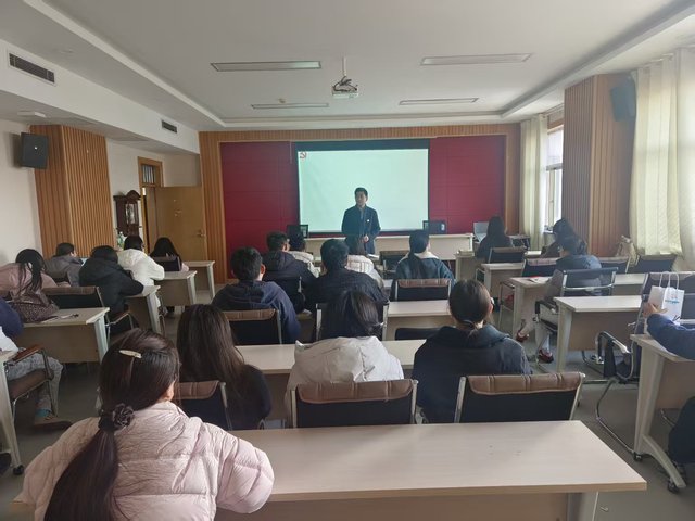 最后,党支部书记侯振中以“凝聚青春磅礴力量,投身祖国统一大业”为题讲授党课。侯振中从历史发展、民族情感等多个角度深刻阐述实现祖国统一的重要性与历史必然性,结合当前复杂的国际形势与台海局势,分析推进统一事业所面临的机遇与挑战。他强调,实现祖国完全统一是中华民族伟大复兴的根基所在,也是全体中华儿女的共同夙愿和神圣职责。随后,他紧密结合研究生特点与学术使命,对支部成员提出了期望和要求。要立足专业领域,深耕学术研究,将个人所学与国家战略需求紧密相连,为增强国力、促进国际人文交流贡献智慧;要提升政治素养,明辨大是大非,主动向身边同学讲好祖国统一的故事。支部成员表示,将持续深化理论武装,以实际行动展现新时代青年的责任担当,争做维护国家统一、促进民族复兴的青年先锋。
