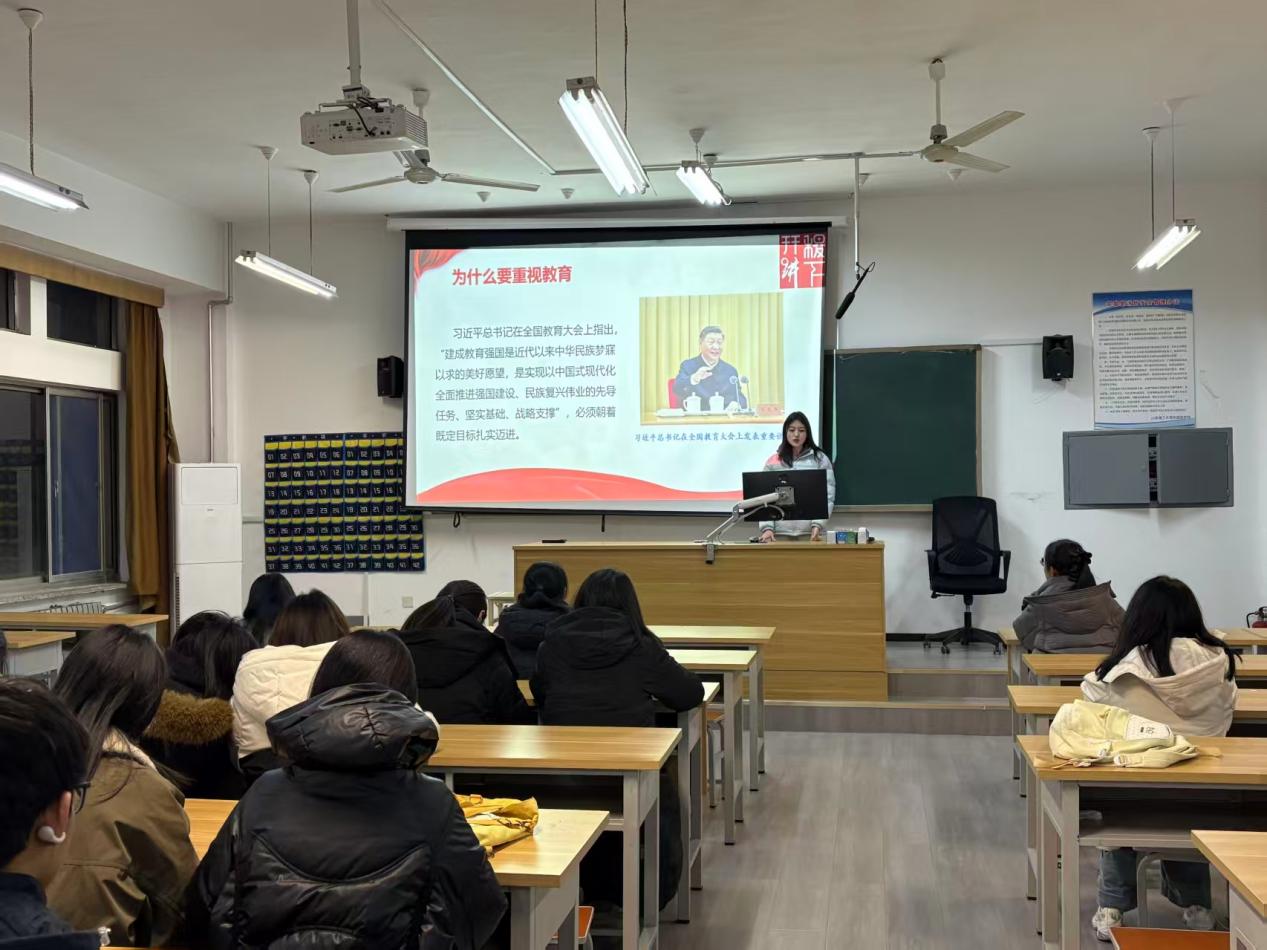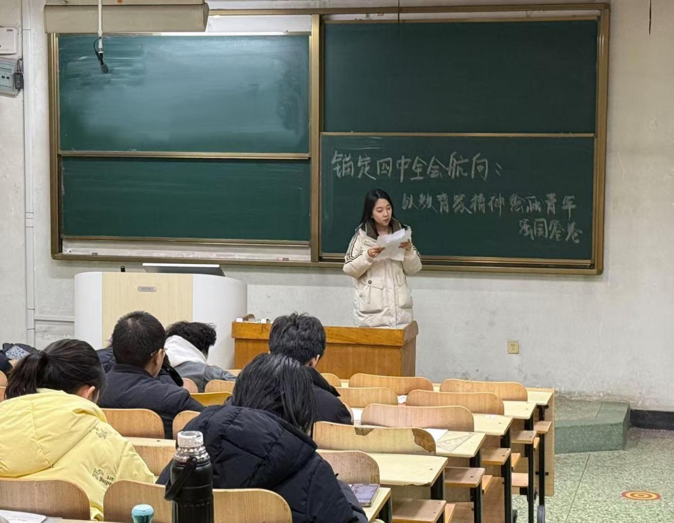 12月22日,刘子瑜、李心如到外国语学院开展主题为“锚定四中全会航向:以教育家精神绘就青年强国答卷”的理论宣讲。她们围绕“二十届四中全会为教育家精神赋予时代新坐标”、“教育家精神和全会精神的内在契合”与“以全会精神为指引践行教育家精神”三个部分展开宣讲,鼓励大家以更加饱满的热情和更加坚定的信念投身到中国式现代化的建设当中,用自己的实际行动书写中华民族伟大复兴的青春篇章。